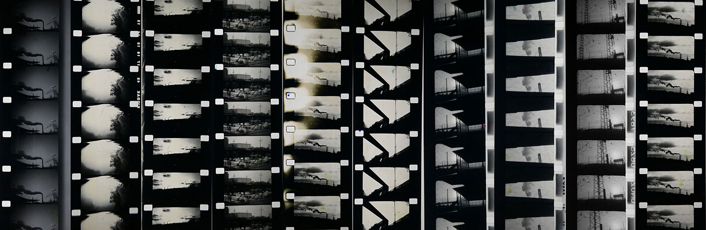 During my residency at Lichtenberg Studios, I focused on the remnants of an industrial past. I was drawn to the formal elements of the landscape of Lichtenberg; in particular, the train yards and the Klingenberg Power plant in Rummelsburg. I was immediately drawn to the beauty and dominance of the smoke coming from the plant and it’s presence in the horizon at different points of the day. Around 7am, the sun would rise up behind the smoke stack, creating a beautiful backlit silhouette, while, as the sun set around 15:30, light would bounce against the churning smoke formations, sculpting new textures and forms. During my stay, I would explore on my bike, filming various angles of the smoke and capturing how it interacted with detailed layers of the Lichtenberg landscape. I filmed with a 16mm hand cranked Bolex camera, mainly shooting hand held verité style. I shot with black and white negative stock, in addition to black and white reversal film, which I hand-processed.