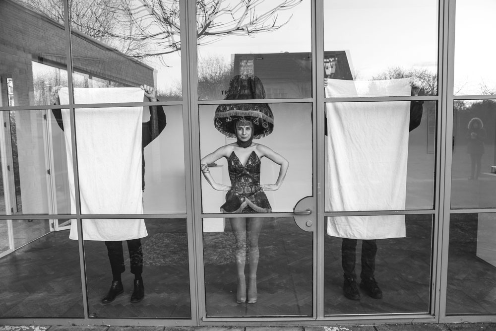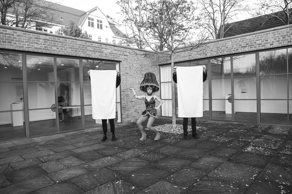 India Roper-Evans‘ Projekt „Lichtenberger Waschsalon“ wurde im Lemke-Haus in Lichtenberg gedreht, das von Mies van der Rohe, Direktor des Bauhauses von 1931-33, entworfen wurde. Er baute das Haus 1932 für Martha und Karl Lemke, das Paar lebte dort bis 1945, als die Rote Armee das Gebäude beschlagnahmte und es als Garage nutzte. Von den 1960er Jahren bis zum Fall der Mauer nutzte die Staatssicherheit (STASI) der DDR das Haus als Wäscherei-Depot. Daraus entstand die Idee, einen kurzen Schwarz-Weiß-Film mit einer Tonspur über sie zu drehen und dieses modernistische Haus als Waschsalon zu nutzen. Die Geschichte Ost-Berlins nach dem Zweiten Weltkrieg, insbesondere Lichtenbergs, ist voller Horrorgeschichten während ihres Regimes. Ich wollte ein Projekt über die schöne Seite Lichtenbergs machen, das dieses moderne, offene Haus an einem friedlichen See zeigt und die STASI parodiert, weil sie es als Waschsalon benutzte. Das eigentliche Haus ist das polare Gegenteil eines von der Staatssicherheit betriebenen Ortes, mit offenen Räumen, großen Glasfenstern und großem Wert auf Licht und Transparenz. Der „Lichtenberger Waschsalon“ wurde an einem Tag gedreht, mit 4 Schauspielern, von denen 3 die Wäsche waschen und 1 als Lampenschirm gekleidet ist, was auf die Liebe des Bauhauses zu Design, Möbeln und Beleuchtung verweist. Es ist an der Zeit, die hässliche Vergangenheit auszuwaschen und die Schönheit und Ruhe zu feiern, die sie ursprünglich inspiriert haben, zu erhellen.