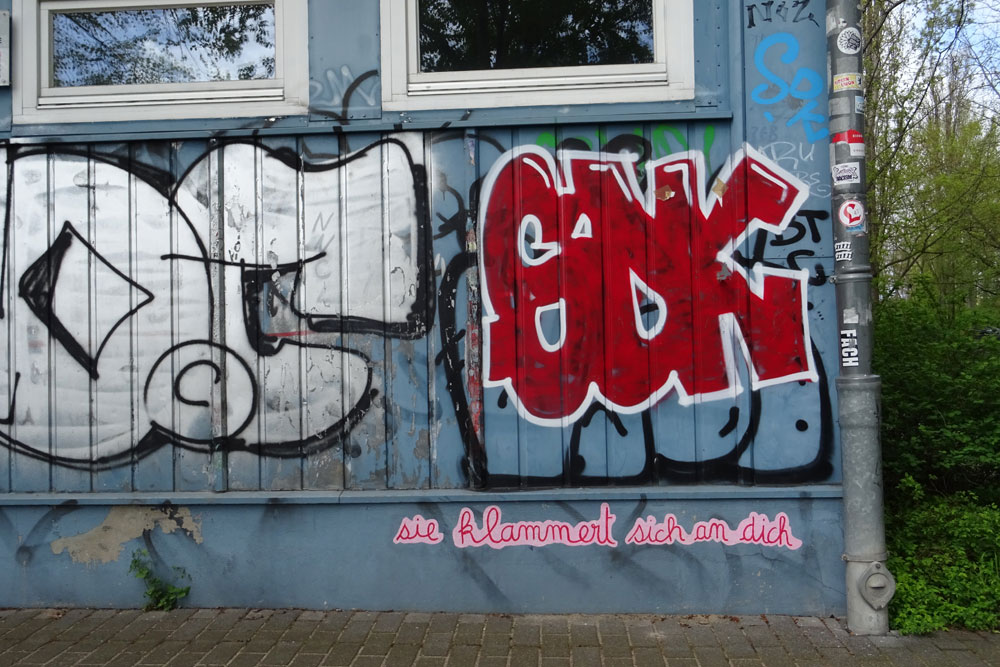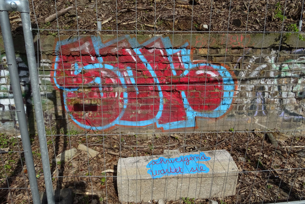 Es gab eine Einöde, in der ich begann, Wildpflanzen zu beobachten. Als ich den Boden absuchte, entdeckte ich einen Rucksack voller Sprühdosen, und ich beschloss, dem nachzugehen. Als ich in der Nachbarschaft nach denselben Pflanzen und Tags suchte, die ich in der Einöde gesehen hatte, wurde mir klar, dass sich zwei Wege kreuzten: der des Taggers, SDK, und der der Pflanze, Claytonia Perfoliata. Mir wurde klar, dass Tagger in gewisser Weise unfreiwillige Gärtner sind. Wenn sie sich in nicht einsehbaren Gebieten wie dem Ödland bewegen, kommen sie in engen Kontakt mit Wildpflanzen und tragen Samen unter ihren Schuhsohlen oder in den Falten ihrer Kleidung. Dann pflanzen sie diese Samen versehentlich an neuen Orten ein. Da wurde mir klar, dass sich die Samen und der Tagger auf einer gemeinsamen Reise befinden. Um diese Reise hervorzuheben, habe ich ein Gedicht verfasst und dann Zeilen daraus in der Nähe von fünf SDK-Tags eingefügt. Die letzte Zeile des Gedichts befindet sich an einer Wand in der Einöde und wird von einem Gemälde der Pflanze Claytonia Perfoliata begleitet.