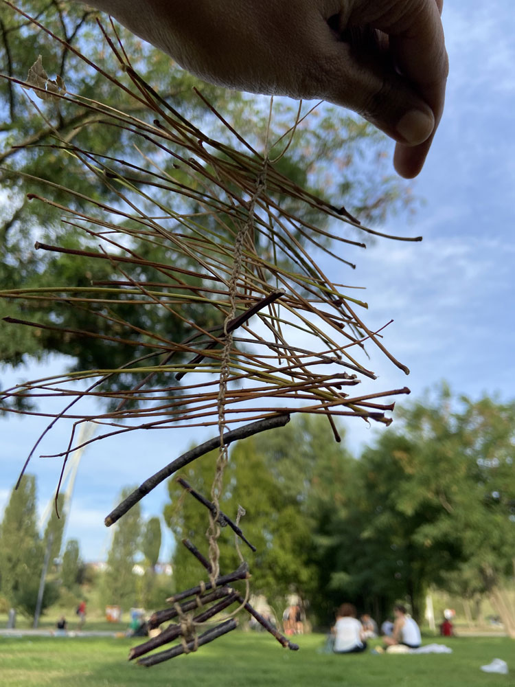 Ich benutzte einen sehr rudimentären Prozess des Zeichnens, Markierens, Aufzeichnens, Kartierens und Kartographierens, um die Risse und Brüche in der Logik und Erzählung von Fortschritt und Entwicklung aufzudecken. Einwanderer, Migranten und Flüchtlinge sind die Textur und das Gewebe der Stadt; widersprüchliche Zustände von Sein und Identität, Zugehörigkeit und Sehnsucht. Ich verbrachte meine Tage in den Parks, machte Abdrücke von Baumrinden, zeichnete in die Luft, benutzte Stöcke und gefundene Gegenstände als Zeichenwerkzeuge, stellte Sammlungen und kleine Assemblagen zusammen, genoss Picknicks in der Sommersonne und beobachtete die Reaktionen der Passanten, die mir bei meinen Aufzeichnungen zusahen. Die Sammlungen wurden zu einer lebendigen Aufzeichnung, einer Karte und einer Spur. Die Zärtlichkeit, mit der ich die Bäume berührte oder umarmte und Abdrücke von der Textur der Rindenoberfläche machte, wurde als eine Begegnung mit der Oberfläche erlebt, die die Narben und Spuren der Zeit freilegte.