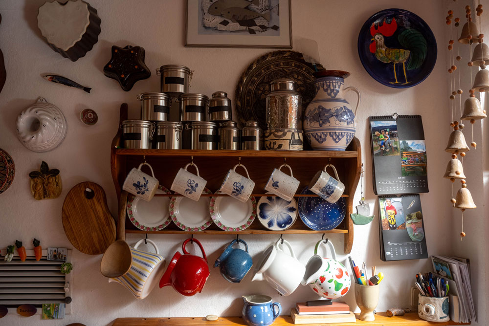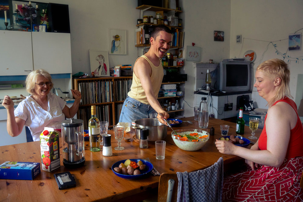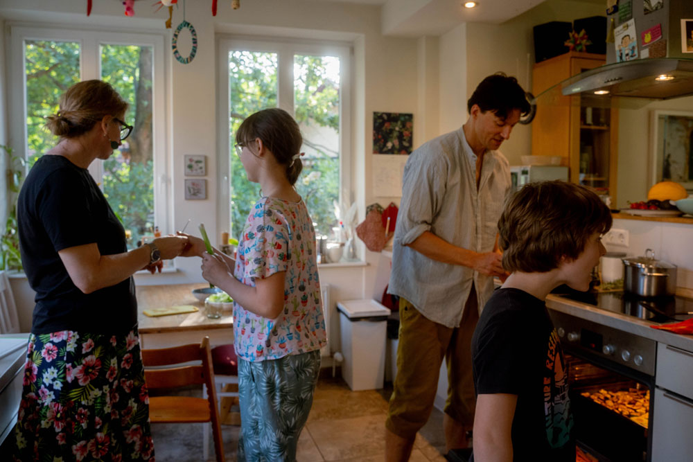 Ich war in verschiedenen Teilen der Stadt unterwegs und fand so viel Liebe und Wärme in schönen Berliner Häusern. Peter und seine reizende Tochter Heidi kochten Kartoffeln für mich, während sie über ihre Sommerurlaubspläne sprachen, mich auf dem Laufenden hielten und mir erklärten, wie heiß der Sommer in Berlin ist. Michael lud mich in sein Haus in Lichtenberg ein, das früher eine Stuhlfabrik war. Während er Kartoffelpuffer briet, erzählte er von seiner Musikkarriere und wie er erst nach der Pandemie mit dem Kochen angefangen hat. Suzanne und ihr Mann Heiko luden mich zu einem wunderbaren Essen mit ihren Kindern ein, bei dem sie mir Auberginen zubereiteten und mir erzählten, wie sie sich an der Universität kennengelernt hatten. Sie zogen nach Berlin, um ein besseres Leben zu führen, und haben jetzt eine kleine Hütte, in der sie Wachteln halten und jeden Tag frische Eier essen. Silke erzählte ihre Lebensgeschichte, wie sie vor dem Mauerbau aus Ostdeutschland geflohen und in West-Berlin gelandet war, um sich ein erfolgreiches Leben als Künstlerin aufzubauen. Sie hatte ein Kochbuch, in dem sie alle Rezepte ihrer Großmutter aufbewahrte, um sich an sie und ihre Kindheit zu erinnern. Thomas und seine Frau kochten mir ein wunderbares Essen mit Gurken und Schweinefleisch und erzählten mir, dass sie ihr ganzes Leben im Osten gelebt hatten. Als die Mauer fiel, packten sie alles in ihre Autos und fuhren für eine Woche in den Westen, um ihre Verwandten zu treffen.