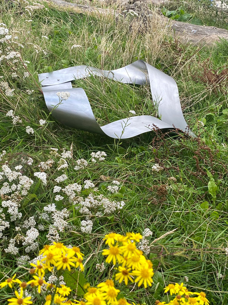 Polin’s creations go beyond conventional limits, transforming into portals that articulate the intangibility of nature, embodying the fluidity of water and the delicate flutter of butterfly wings. Through deconstruction, she reveals the essence of real objects in abstract forms. Stepping beyond the confines of the studio, Polin intervenes in parks, forests, and streets, allowing her works to naturally fade over time.